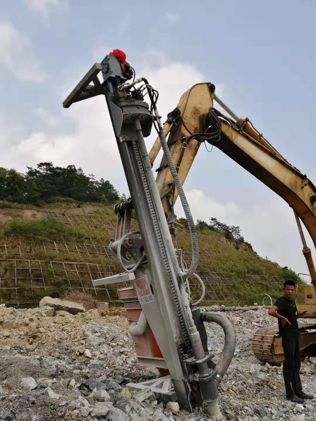 衢州开钻机械在成熟技术的基础上,断提高钻机产能和作业适应能力。潜孔钻机在应用灵活性以及可靠性方面产能更高,适应性更强,成孔质量好。可以依赖一台钻机进行生产钻孔,通过并段和预裂钻孔加快剥离速度,并控制贫化率。较轻的重量和紧凑的尺寸,KZ910B在工地间、台阶间的转移十分方便由于其优异的灵活性和强大的作业能力。